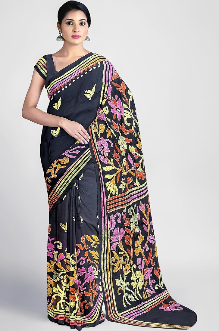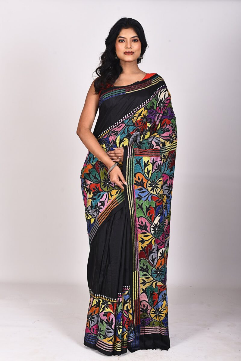 ⭐ Why Choose This Black Floral Kanthastitch Saree?
