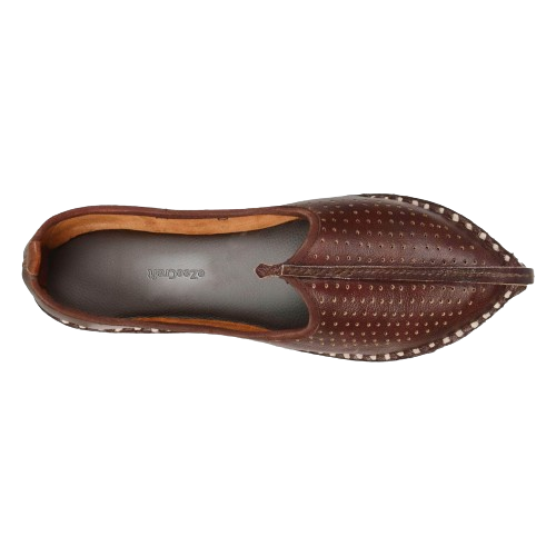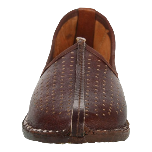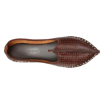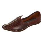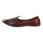 Royal touch meets everyday comfort. This coffee-brown leather mojari is hand-stitched by artisans in Rajasthan. Genuine leather, breathable lining, and a classic curved toe – perfect for weddings, festivals, or office wear. Ships directly from Jodhpur.